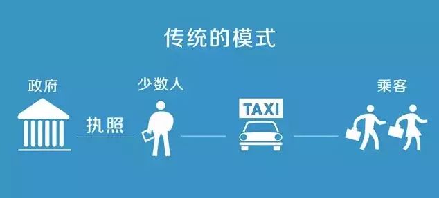 过去很多人有车,不能接活,所以我们必须跟出租车司机相连接,出租车公司跟政府相连接,获得执照,然后再跟用户相连接,这很复杂。